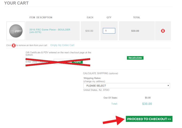 3. Proceed to checkout to complete your transaction. Enter your PDV Code. Click the “Apply a Gift Certificate or PDV” Button to bring up an entry field. If this link button doesn’t appear, please login to your account as shown in “step 1”. If you’ve used your PDV on a previous order, it will automatically be applied to subsequent orders on the same account, and this step can be skipped.